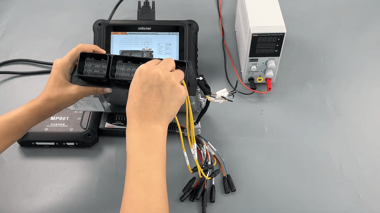 Select the correct adapter, confirm the ECU image, and follow the connector pinout to complete the wiring.