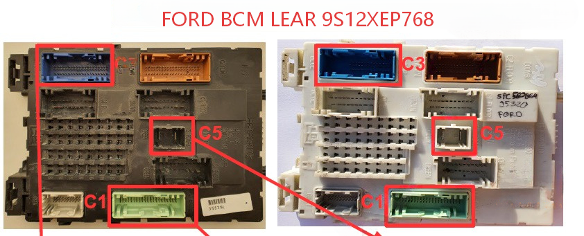 These Ford Lear BCMs can come in white or black cases, but the case color does not indicate the internal type and should not be used as a reference.