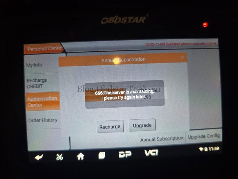 In some cases, the message is shown simply because the device is trying to verify the renewed license with the OBDSTAR update server, which may be under maintenance or experiencing delay.