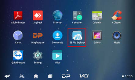 On the home screen, tap the menu button and open ES File Explorer.