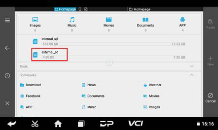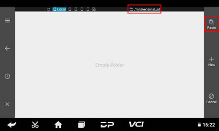 Select the external TF card and tap Paste. Wait for the copy to complete. After upgrading, simply overwrite the DP folder back to the device from the TF card.