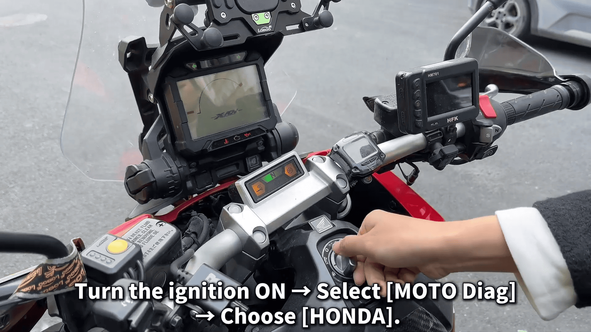 Ignition ON → [MOTO Diag] → [Honda] → [Auto Scan].