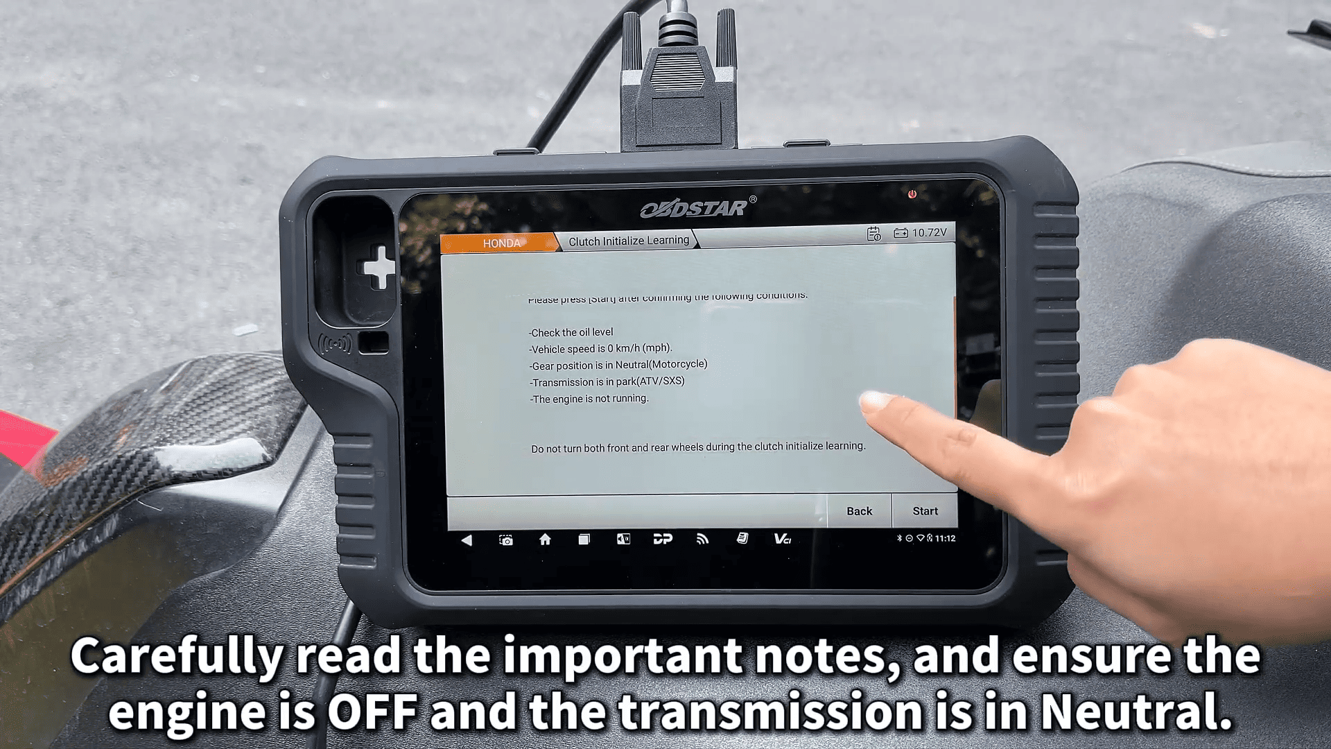 This process resets the clutch adaptation values on the 2020 Honda ADV750, ensuring smooth shifting and proper clutch engagement. Always use the official M041 cable with OBDSTAR Motomaster Motorcycle Scanner for reliable results.