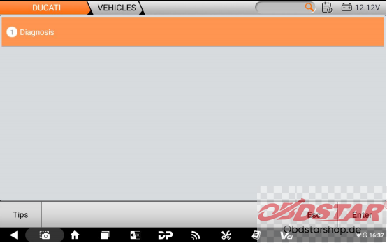 Step 1: Select [MOTO Diag]–[DUCATI] — Latest Version to enter [Diagnosis];