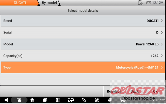 Step 3: Sequentially select [D] >[Diavel 1260 E5] > [1262] >[MY 21]