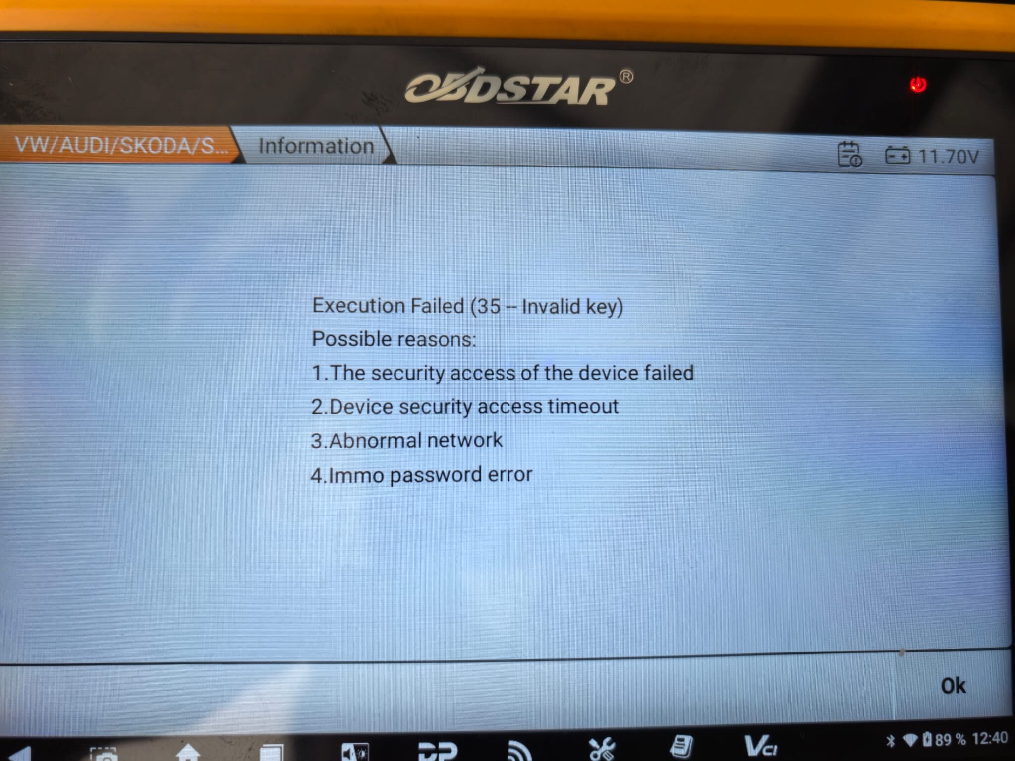 OBDSTAR X300 Classic G3 MQB Error 35 Invalid Key Full Fix Guide