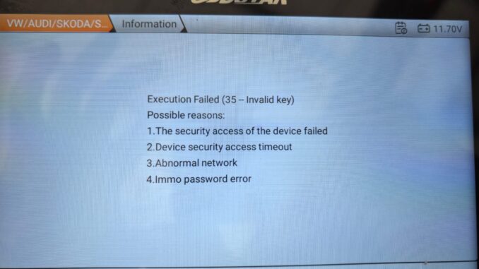 OBDSTAR X300 Classic G3 MQB Error 35 Invalid Key Full Fix Guide