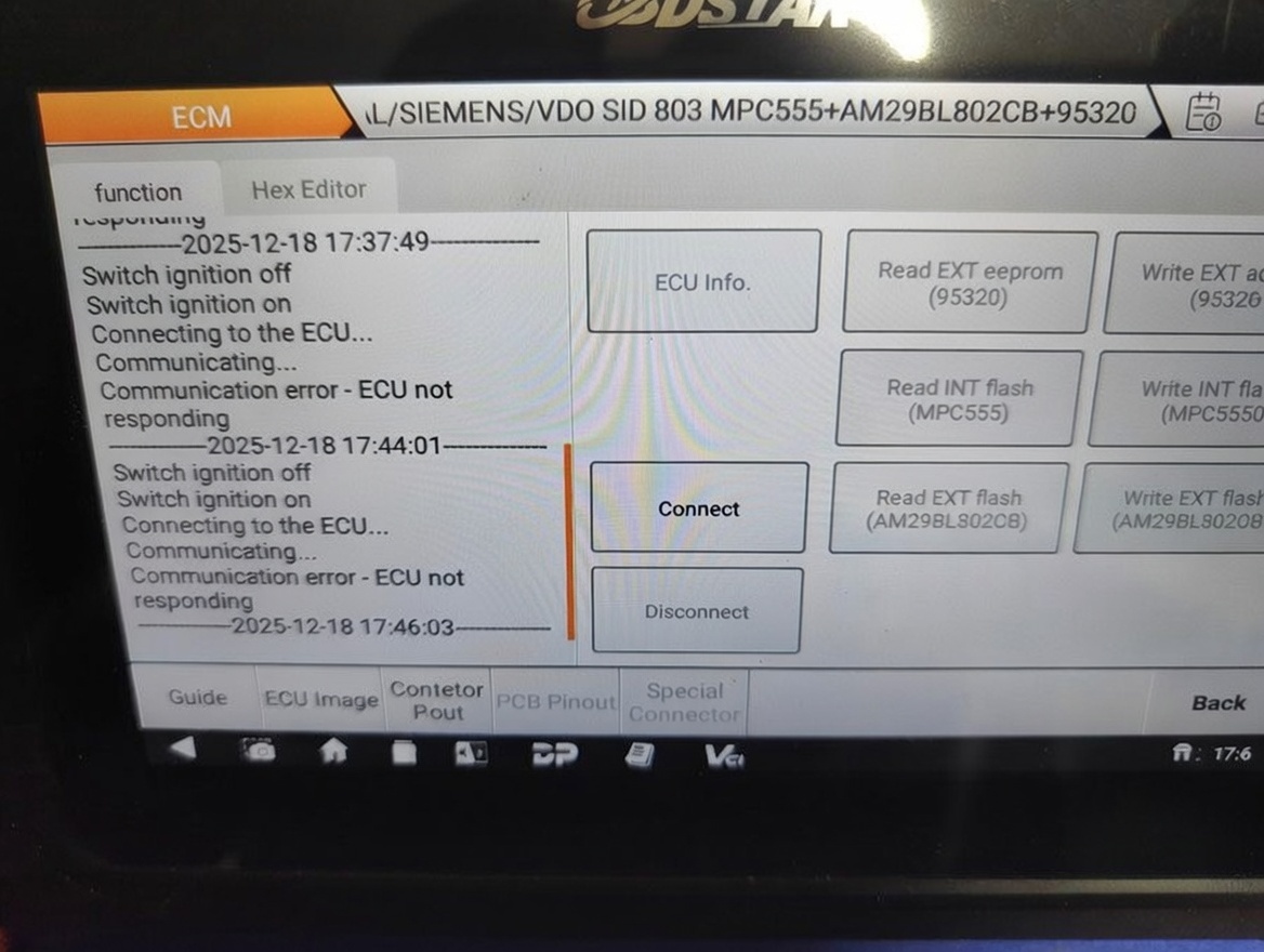 Volvo Sid803, OBDSTAR DC706 programmer bench not connecting!!! Any tips?!